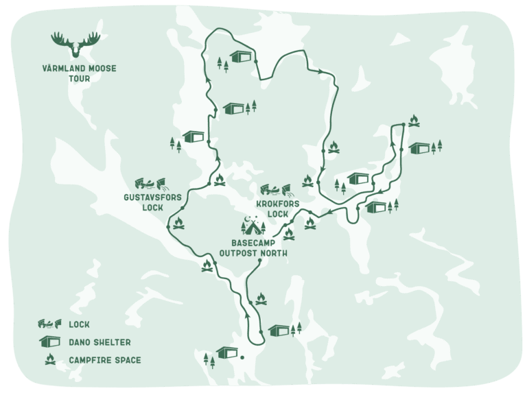 Deze tocht neemt je mee via waters dwars door de bossen van Värmland. Verwacht een verscheidenheid aan landschappen: kristalheldere meren, kronkelende rivieren en beboste paden waar de eland, de trots van de regio, je pad kan kruisen. Met zijn vier land crossings voegt deze route een avontuurlijke dimensie toe aan je expeditie en biedt de perfecte balans tussen kanoën en een ontdekkingstocht over land.